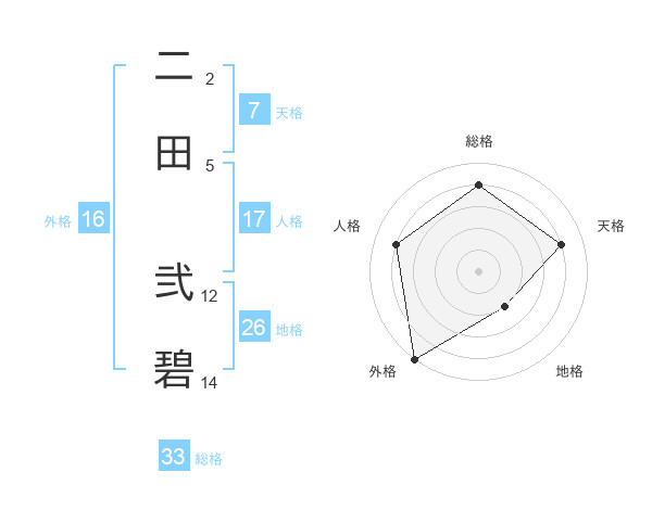 二田 弐碧さんを姓名の画数から五運を鑑定
