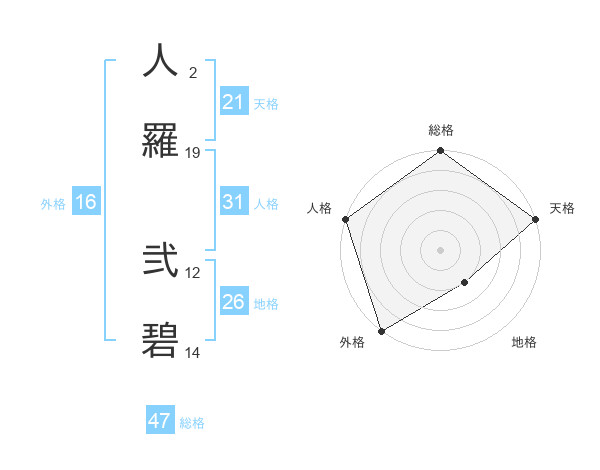 人羅 弐碧さんの天格は21画の5点!