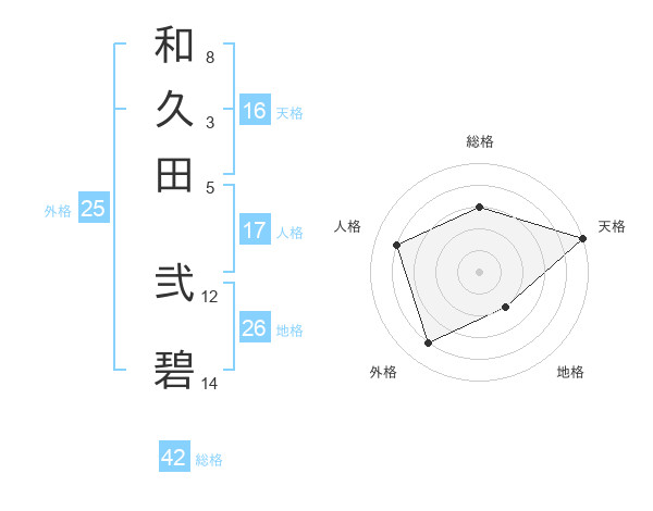 和久田 弐碧さんの天格は16画の5点!