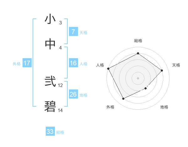小中 弐碧さんの外格は17画の4点!