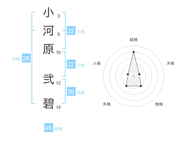 小河原 弐碧さんを姓名の画数から五運を鑑定