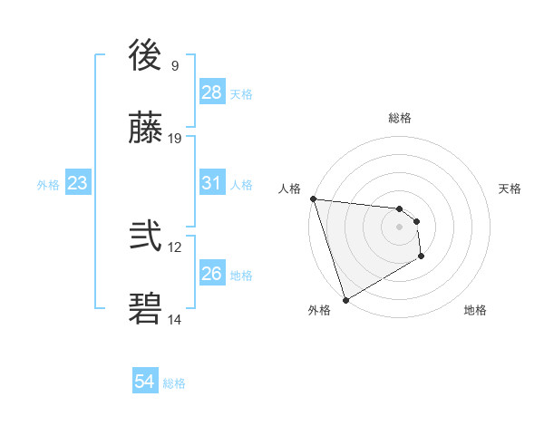 後藤 弐碧さんを姓名の画数から五運を鑑定