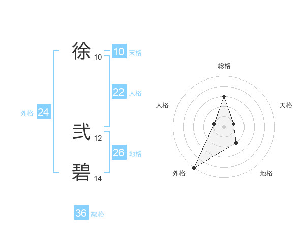 徐 弐碧さんの総格は36画の3点!