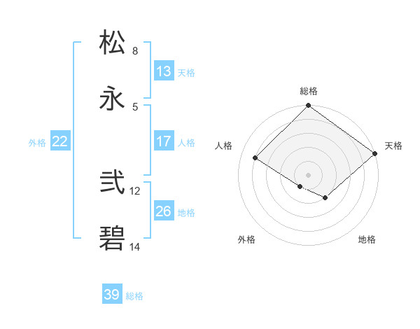 松永 弐碧さんの総格は39画の5点!