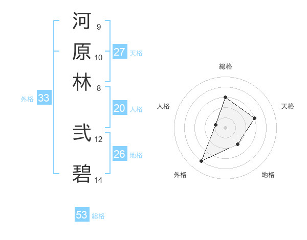 河原林 弐碧さんを姓名の画数から五運を鑑定