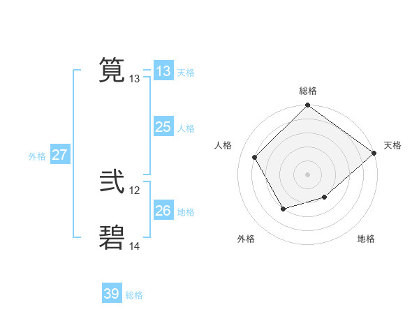 筧 弐碧さんの総格は39画の5点!