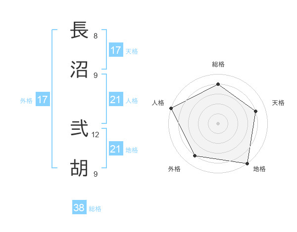 長沼 弐胡さんを姓名の画数から五運を鑑定