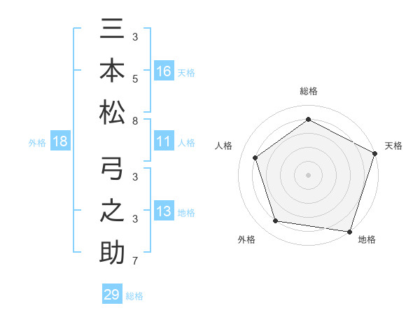 三本松 弓之助さんを姓名の画数から五運を鑑定