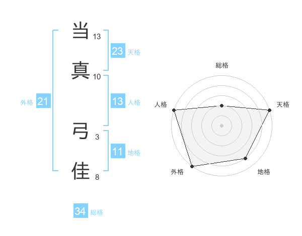当真 弓佳さんの天格は23画の5点!