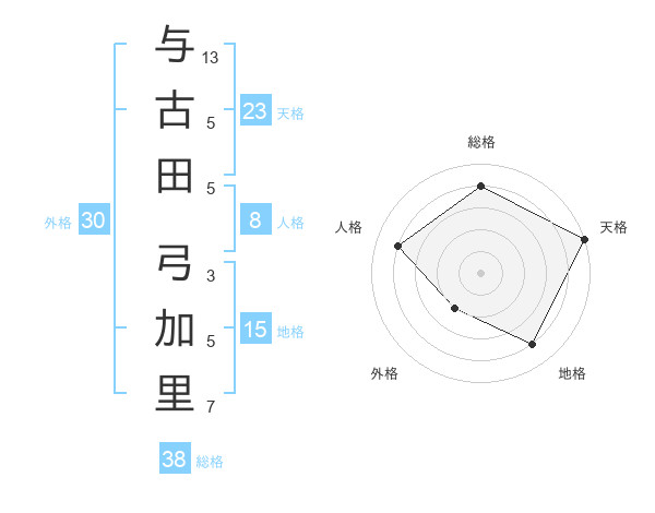 与古田 弓加里さんを姓名の画数から五運を鑑定