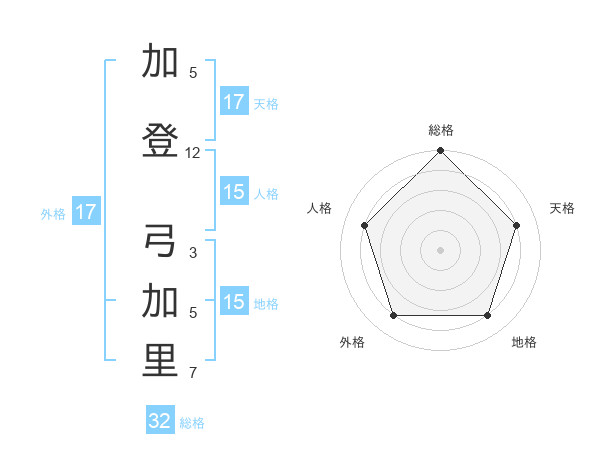 加登 弓加里さんを姓名の画数から五運を鑑定