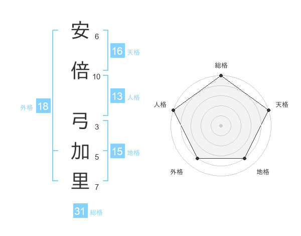 安倍 弓加里さんを姓名の画数から五運を鑑定