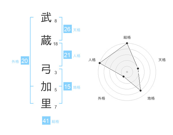 武蔵 弓加里さんを姓名の画数から五運を鑑定