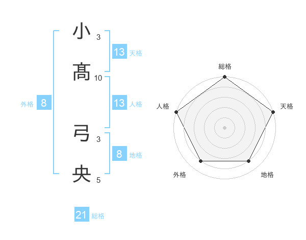 小髙 弓央さんの天格は13画の5点!