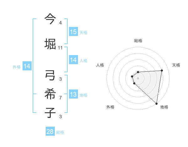今堀 弓希子さんの総格は28画の1点!