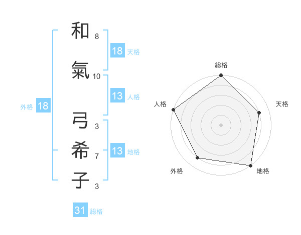 和氣 弓希子さんの天格は18画の4点!