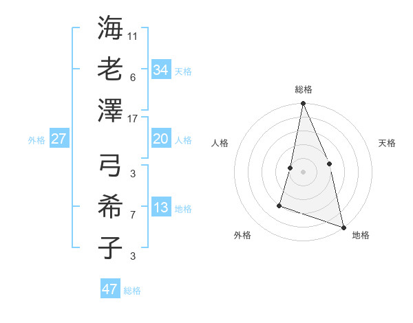海老澤 弓希子さんを姓名の画数から五運を鑑定