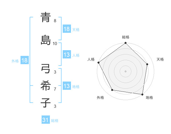 青島 弓希子さんを姓名の画数から五運を鑑定