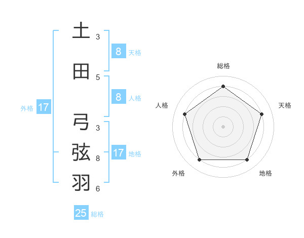 土田 弓弦羽さんを姓名の画数から五運を鑑定