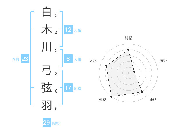 白木川 弓弦羽さんを姓名の画数から五運を鑑定