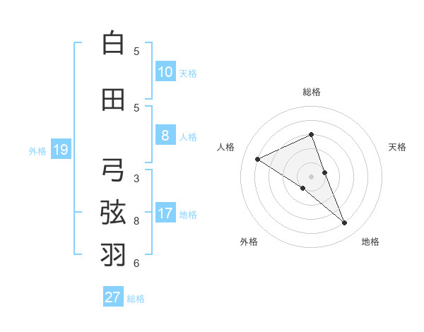 白田 弓弦羽さんを姓名の画数から五運を鑑定