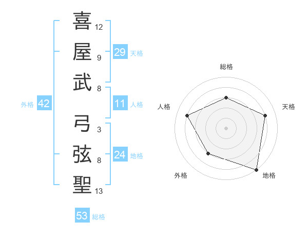 喜屋武 弓弦聖さんの総格は53画の3点!