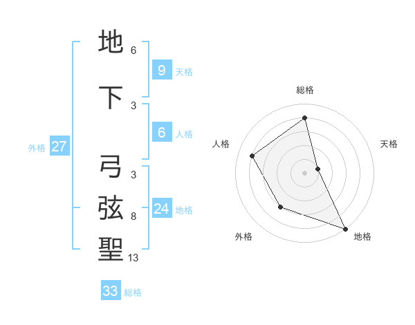 地下 弓弦聖さんの総格は33画の4点
