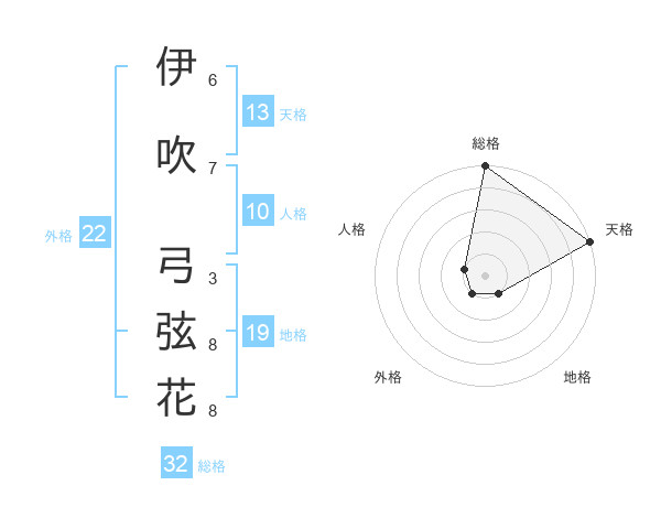 伊吹 弓弦花さんを姓名の画数から五運を鑑定