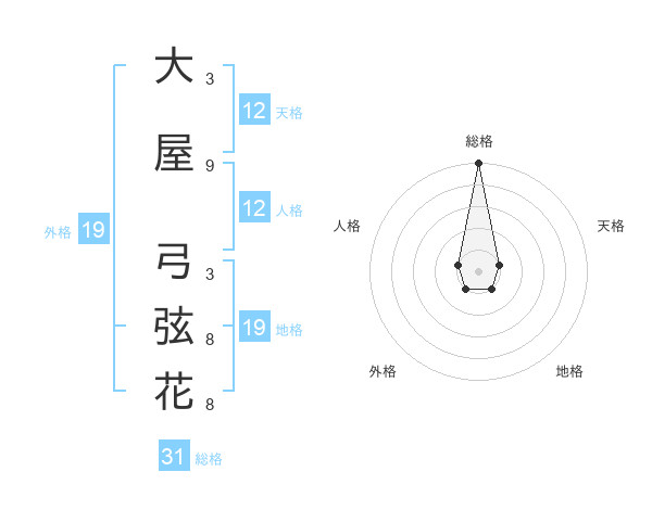 大屋 弓弦花さんを姓名の画数から五運を鑑定