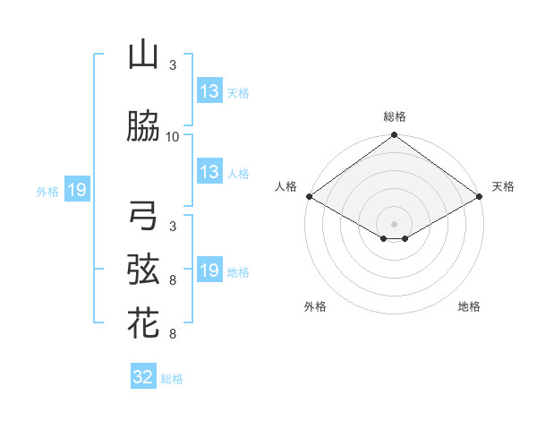 山脇 弓弦花さんを姓名の画数から五運を鑑定