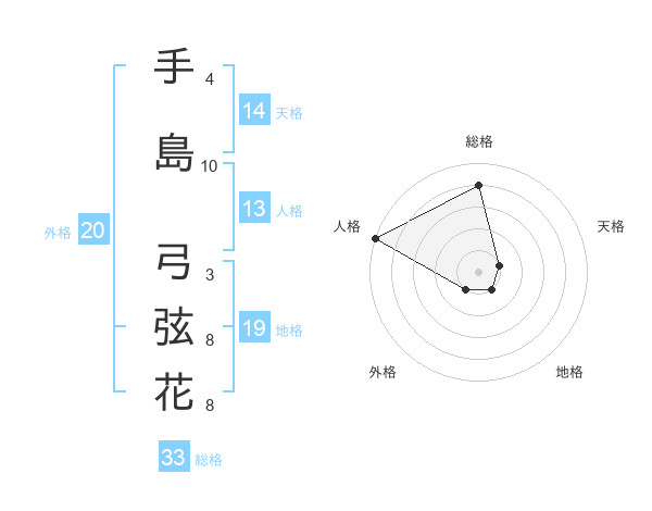 手島 弓弦花さんの総格は33画の4点!
