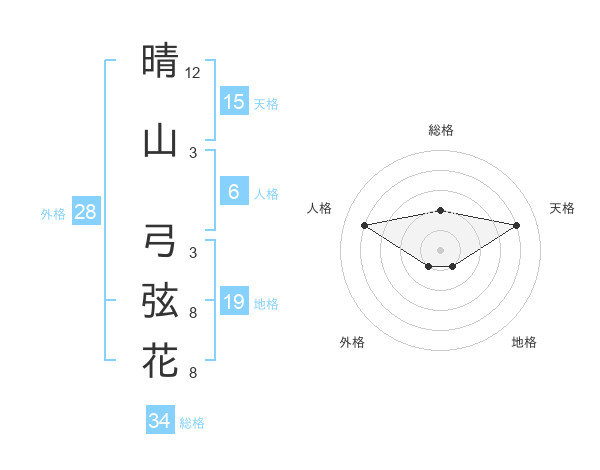 晴山 弓弦花さんの天格は15画の4点!