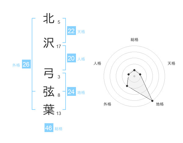 北沢 弓弦葉さんの地格は24画の5点!