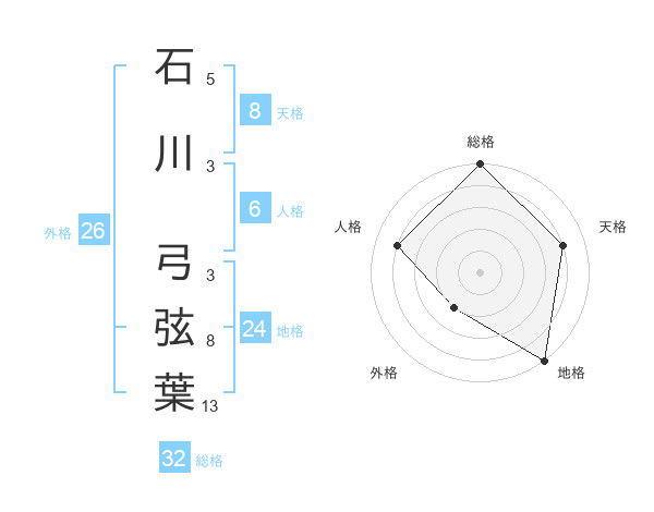 石川 弓弦葉さんを姓名の画数から五運を鑑定