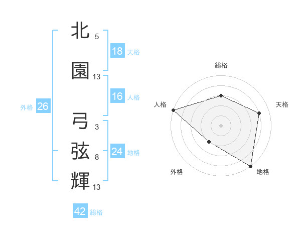 北園 弓弦輝さんを姓名の画数から五運を鑑定