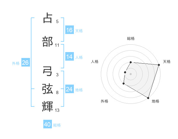 占部 弓弦輝さんを姓名の画数から五運を鑑定