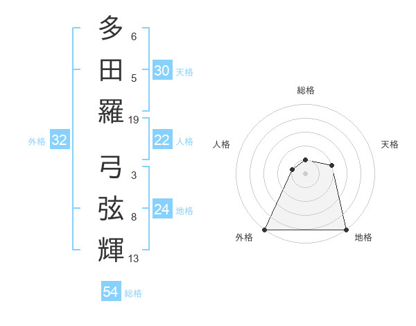多田羅 弓弦輝さんを姓名の画数から五運を鑑定
