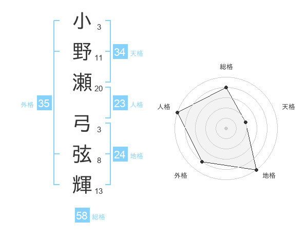 小野瀬 弓弦輝さんを姓名の画数から五運を鑑定