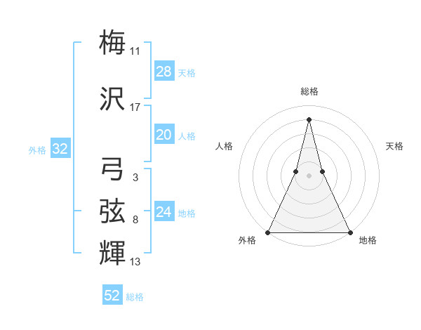 梅沢 弓弦輝さんを姓名の画数から五運を鑑定