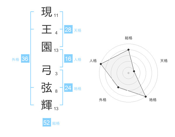 現王園 弓弦輝さんを姓名の画数から五運を鑑定
