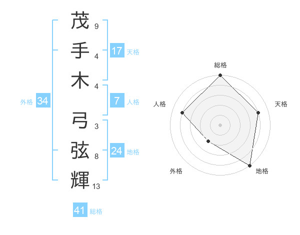 茂手木 弓弦輝さんの総格は41画の5点!