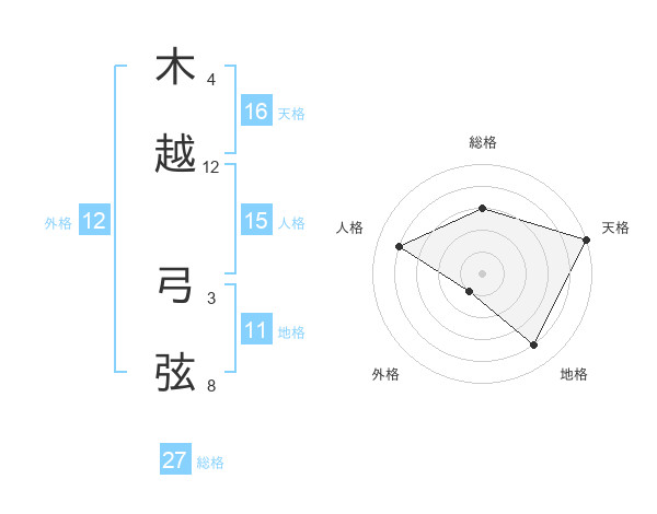 木越 弓弦さんの天格は16画の5点!