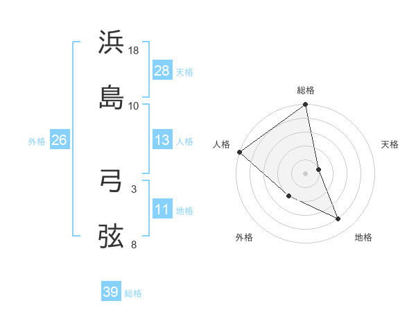 浜島 弓弦さんを姓名の画数から五運を鑑定