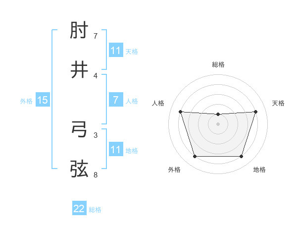 肘井 弓弦さんの天格は11画の4点!