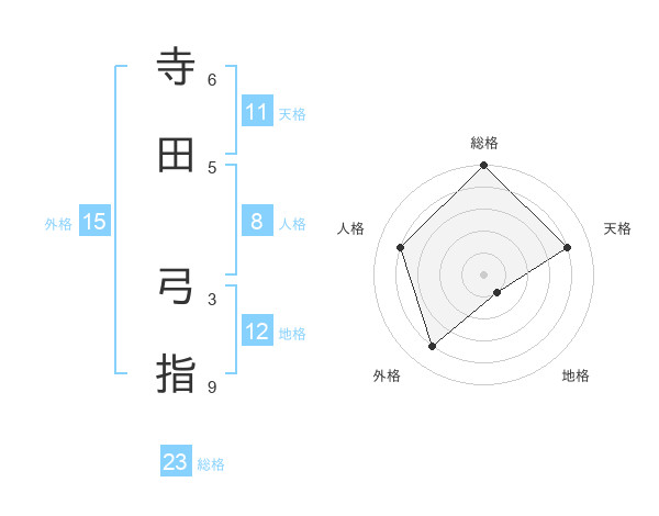 寺田 弓指さんの総格は23画の5点!
