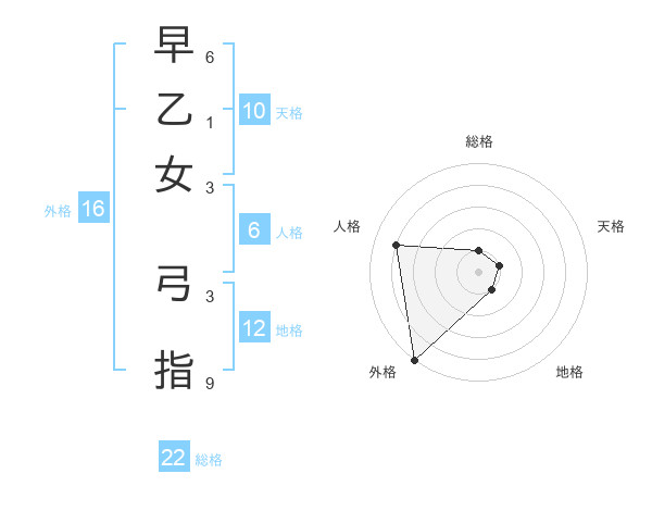 早乙女 弓指さんの外格は16画の5点!
