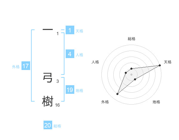 一 弓樹さんの総格は20画の1点!