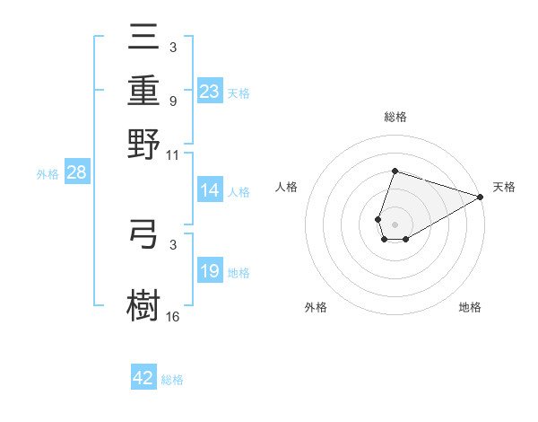 三重野 弓樹さんの天格は23画の5点!