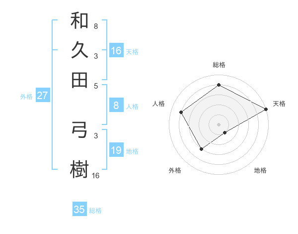 和久田 弓樹さんを姓名の画数から五運を鑑定