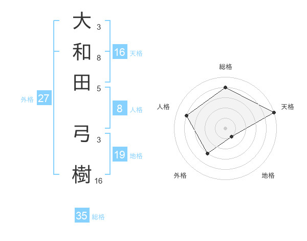 大和田 弓樹さんを姓名の画数から五運を鑑定